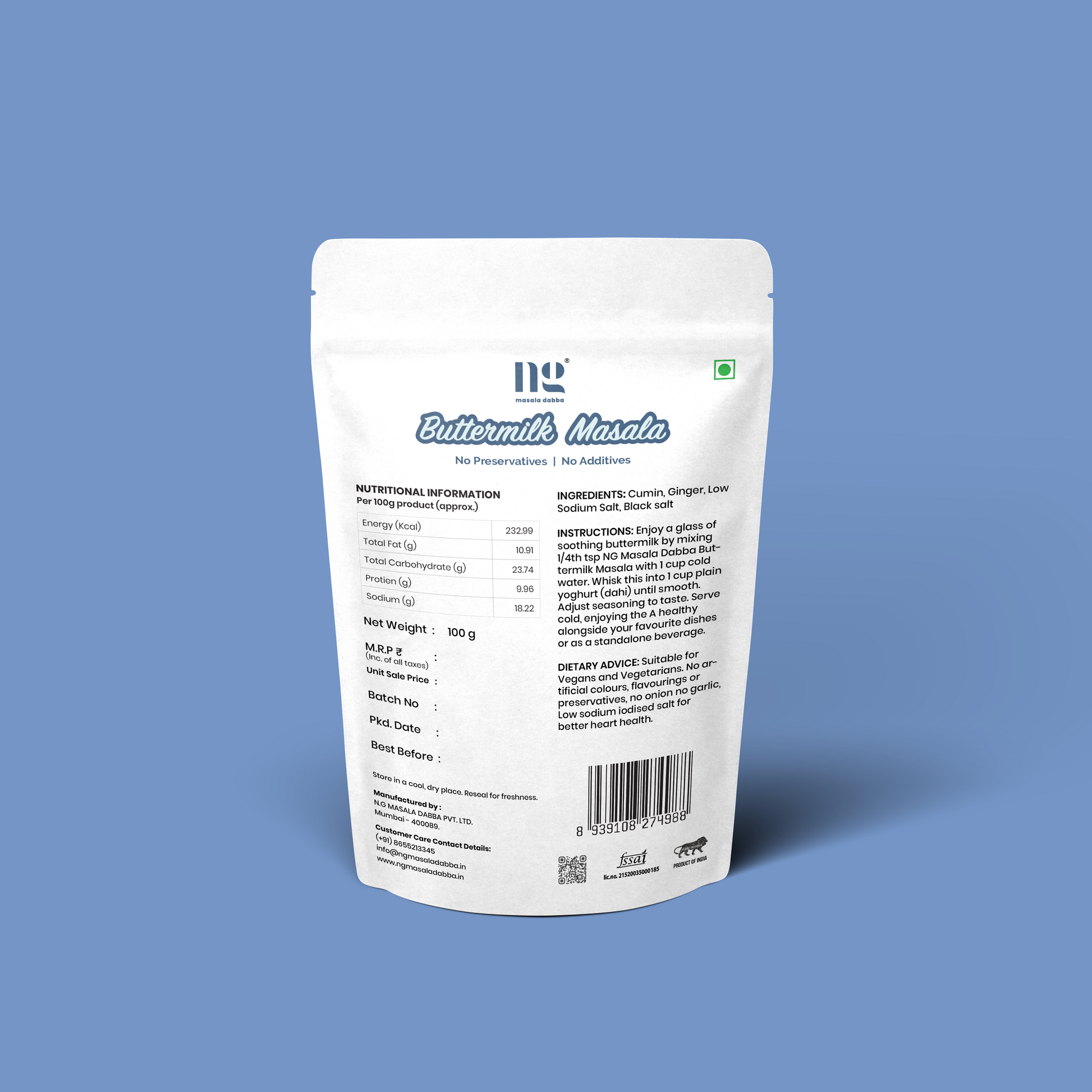 Rich Flavor and Aroma: A well-balanced blend of spices that enhances the natural flavours of buttermilk.